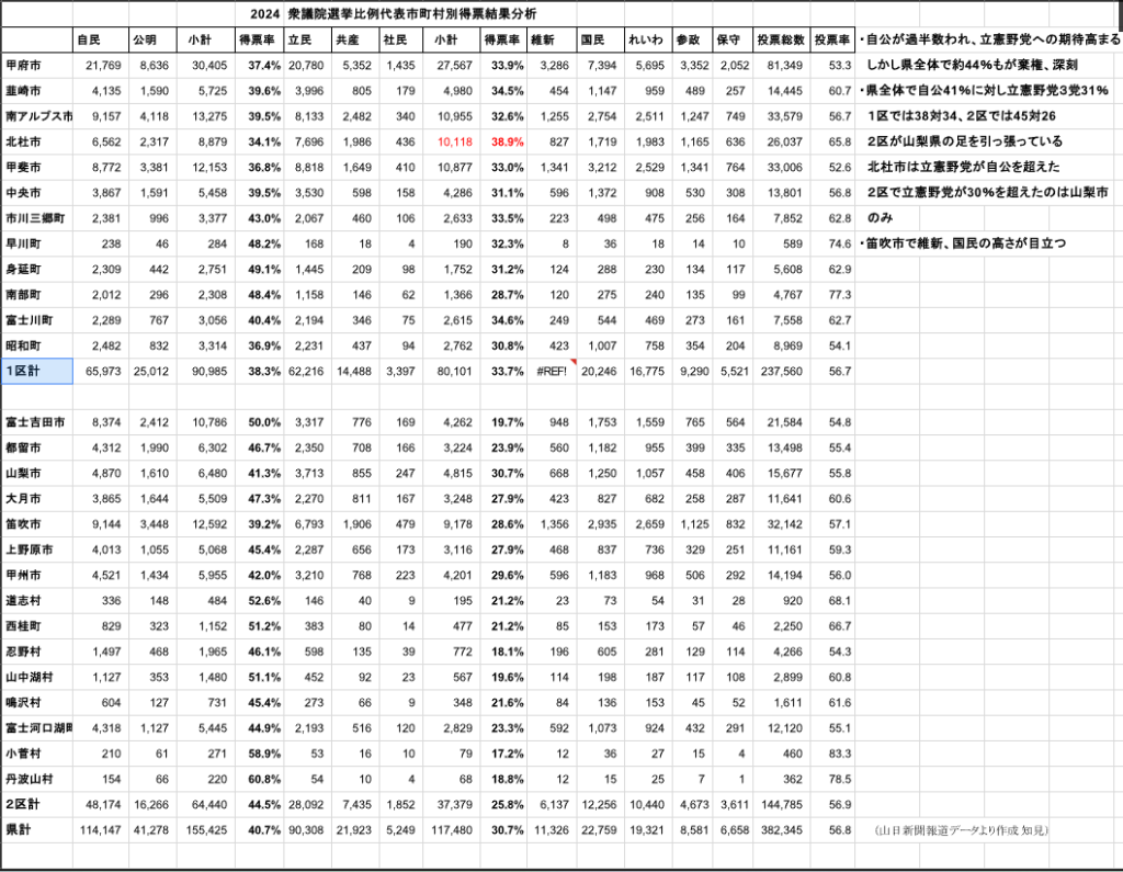 2024年 衆議院選挙比例代表市町村別得票結果分析