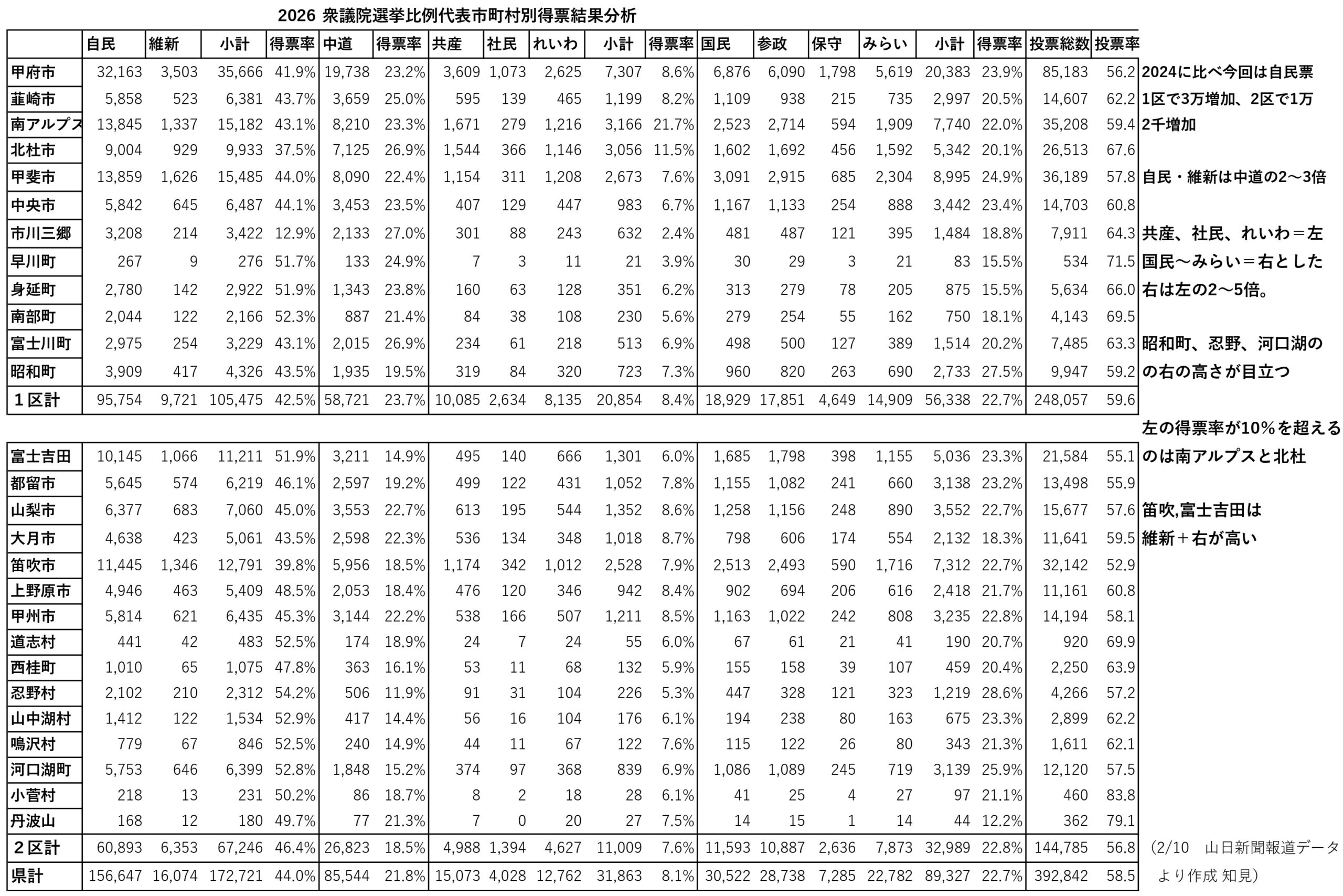 2026年 衆議院選挙比例代表市町村別得票結果分析